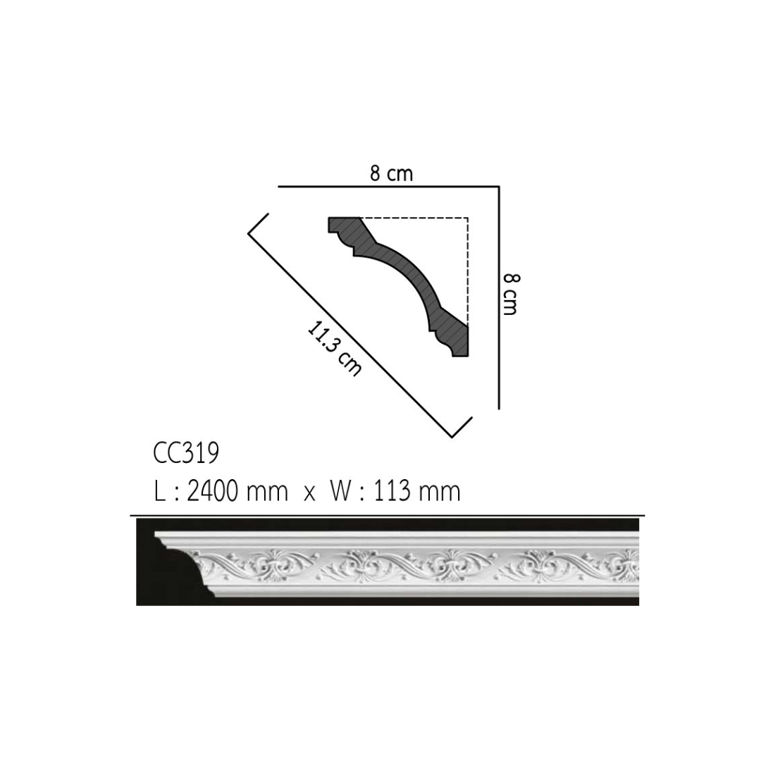 บัวฝ้า โพลียูรีเทน (PU) บัวฝ้า มีลาย 4.5″ 113mmx2.40m รหัส CC319 ราคา/เส้น