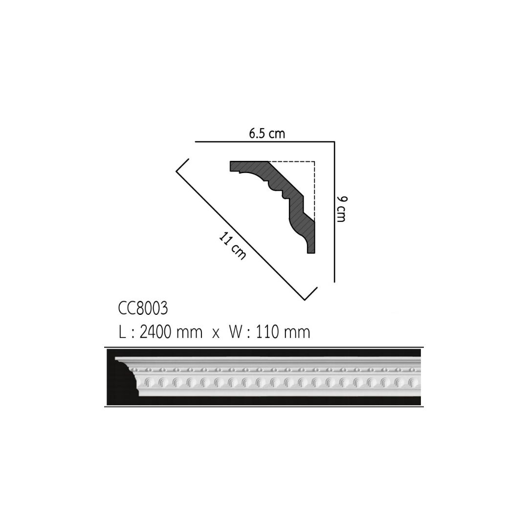 บัวฝ้า โพลียูรีเทน (PU)  บัวฝ้า มีลาย 4.5" 110mmx2.40m รหัส CC8003บัวฝ้า โพลียูรีเทน (PU) บัวฝ้า มีลาย 4.5″ 110mmx2.40m รหัส CC8003