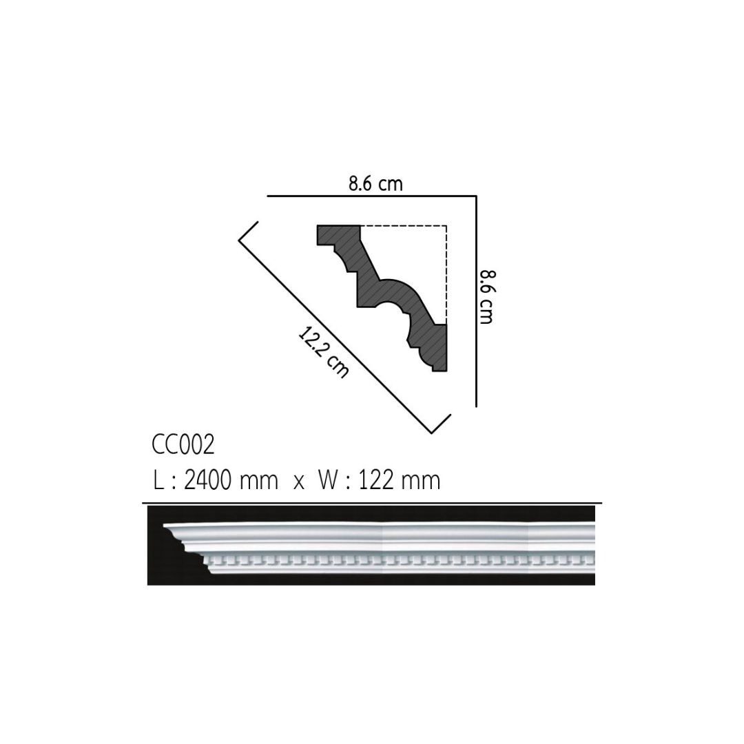 บัวฝ้า โพลียูรีเทน (PU) บัวฝ้า มีลาย 5″ 122mmx2.40m รหัส CC002   ราคา/เส้น