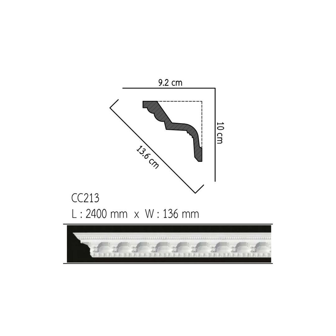บัวฝ้า โพลียูรีเทน (PU) บัวฝ้า มีลาย 6″ 136mmx2.40m รหัส CC213 ราคา/เส้น