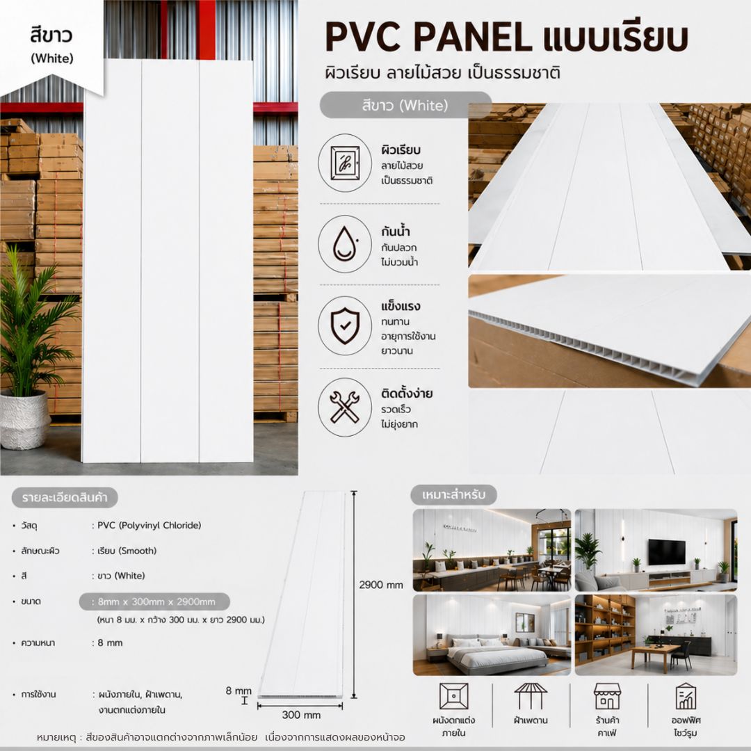 PVC PANEL แบบเรียบ รหัส PVC3066 TH7000 (ขาว) แบบเรียบ 8mmx300mmx2900mm