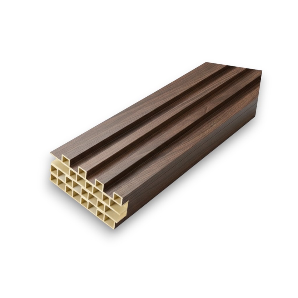 WPC PANEL 4ร่องลึก รหัส 410 882541-1 สี วอลนัท ขนาด 22x160x2900mm ราคาต่อกล่อง 1 กล่อง/10 เส้น